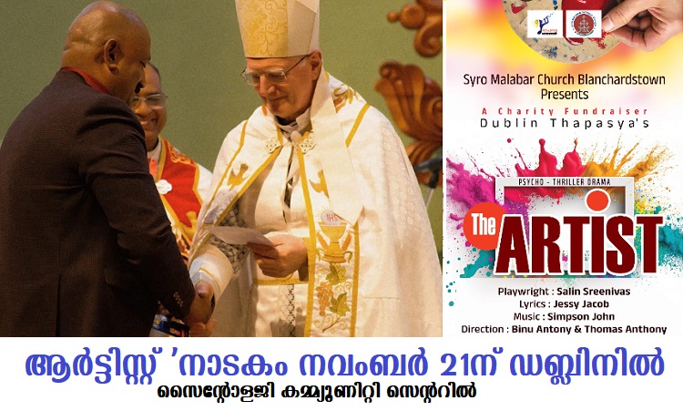 ഡബ്ലിന്‍: സിറോ മലബാര്‍ ചര്‍ച്ച് ബ്ലാഞ്ചട്‌സ്ടൗണ്‍ നടത്തുന്ന ചാരിറ്റി ഫണ്ട് സമാഹരണത്തിന്റെ ഭാഗമായി ഡബ്ലിന്‍ തപസ്യയുടെ ഏറ്റവും പുതിയ നാടകം ‘ആര്‍ട്ടിസ്റ്റ്’ നവംബര്‍ 21-ന് വൈകിട്ട് ഏഴ് മണിക്ക് ഡബ്ലിനില്‍ സൈന്റോളജി കമ്മ്യൂണിറ്റി സെന്ററില്‍ അരങ്ങേറുന്നു .