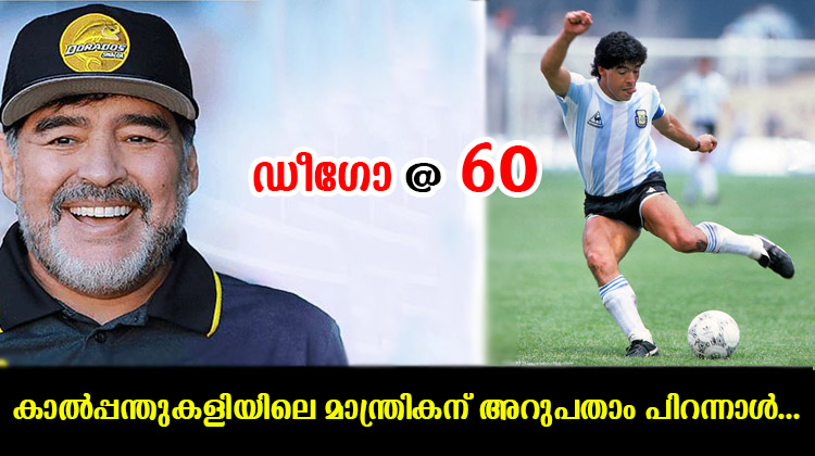 മൈതാനത്ത് ഇതിഹാസങ്ങള്‍ തീര്‍ത്ത് ലോകമെമ്പാടുമുള്ള ഫുട്‌ബോള്‍ പ്രേമികളുടെ മനസില്‍ ഇടം നേടിയ കാല്‍പന്തുകളിയിലെ പകരക്കാരനില്ലാത്ത രാജകുമാരന്‍ ഡീഗോ അര്‍മാന്‍ഡോ മറഡോണയ്ക്ക് ഇന്ന് അറുപതാം പിറന്നാള്‍.