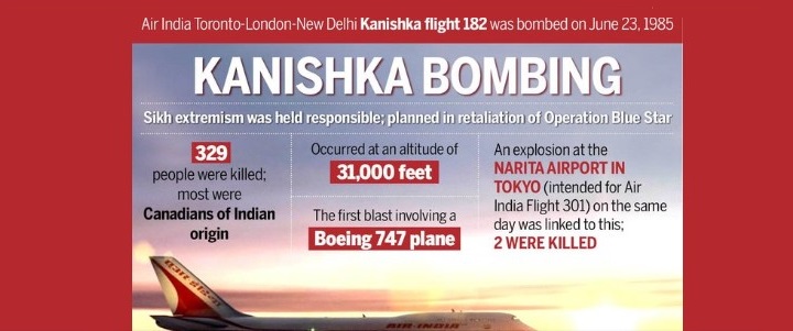 ടൊറന്റോയില് നിന്ന് മുംബൈയിലേക്കുള്ള യാത്രാമധ്യേ ഐറിഷ് തീരത്ത് വെച്ച് പൊട്ടിത്തെറിച്ച വിമാനത്തിലെ എല്ലാ യാത്രക്കാരും കൊല്ലപ്പെട്ടിരുന്നു.