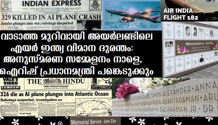 വാടാത്ത മുറിവായി അയര്ലണ്ടിലെ എയര് ഇന്ത്യ വിമാന ദുരന്തം: അനുസ്മരണ സമ്മേളനം നാളെ