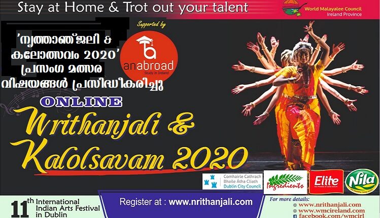 ഡബ്ലിന്: വേള്ഡ് മലയാളി കൗണ്സില് അയര്ലണ്ട് പ്രോവിന്സിന്റെ പതിനൊന്നാമത് ‘നൃത്താഞ്ജലി & കലോത്സവം 2020 ‘ത്തിനുള്ള ഓണ്ലൈന് രജിസ്ട്രേഷന് പുരോഗമിക്കുന്നു. കോവിഡ് 19 മഹാമാരിയുടെ പശ്ചാത്തലത്തില് ഇത്തവണ മത്സരങ്ങള് ഓണ്ലൈനായാണ് നടത്തപ്പെടുന്നത്.