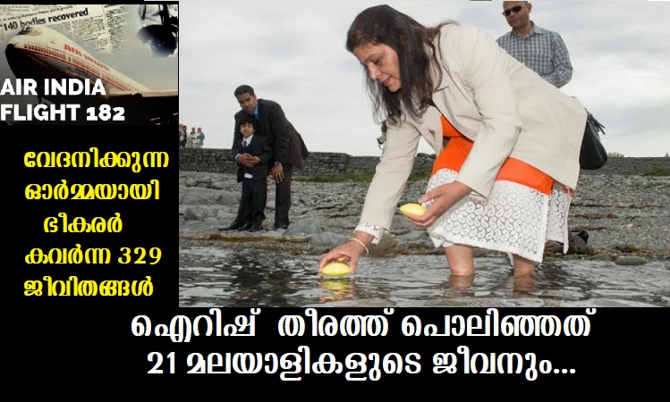 1985 ജൂണ് 23ന് രാവിലെ 8.13ന് കോര്ക്ക് തീരത്ത് നിന്ന് എയര് ഇന്ത്യയുടെ ബോയിംഗ് 747-237 ബി, ഫ്ളൈറ്റ് 182 പൊട്ടിത്തെറിച്ചത്.