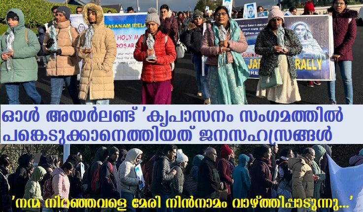 നോക്ക് : കൃപാസനം അയര്ലന്ഡ് ശാഖയുടെ നേതൃത്വത്തില് ,ഓള് അയര്ലന്ഡ് രണ്ടാമത് ‘കൃപാസനം സംഗമം’ ഒക്ടോബര് 25 ന് നോക്കില് വച്ച് നടന്നു. രാവിലെ 11 മണി മുതല് അഖണ്ഡ ജപമാലയും തുടര്ന്ന് 3.15 ന് വിശുദ്ധ കുര്ബാനയര്പ്പണവും നടന്നു.