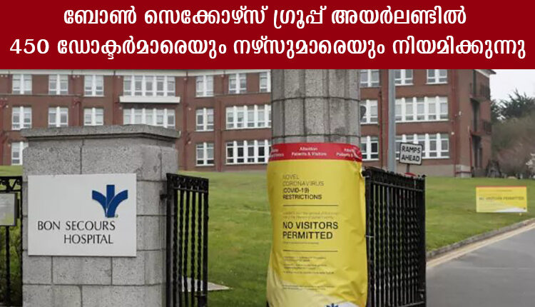 ഡബ്ലിന് : അയര്ലണ്ടിലെ പ്രമുഖ സ്വകാര്യ ആശുപത്രി ഗ്രൂപ്പായ ബോണ് സെക്കോഴ്സ് ഡോക്ടര്മാരെയും നഴ്സുമാരെയും റിക്രൂട്ട് ചെയ്യുന്നു. 450 പേരെയാണ് ഗ്രൂപ്പ് നിയമിക്കുന്നത്. 300 മില്യണ് യൂറോയാണ് ഇതിനായി സ്ഥാപനം നീക്കിവെച്ചിട്ടുള്ളത്. 450 പുതിയ തസ്തികകളില് 80 എണ്ണം ഡബ്ലിനിലും 80 എണ്ണം കോര്ക്കിലും 250 എണ്ണം ലിമെറിക്കിലുമാണ്.