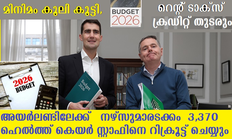 മിനിമം കൂലി കൂട്ടി, റെന്റ് ടാക്സ് ക്രഡിറ്റ് ആയിരം യൂറോ തുടരും, അയര്ലണ്ടില് 3,370 പുതിയ ഹെല്ത്ത് കെയര് സ്റ്റാഫിനെ റിക്രൂട്ട്