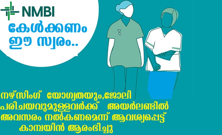 നഴ്സിംഗ് യോഗ്യതയും,ജോലി പരിചയവുമുള്ളവര്ക്ക് അയര്ലണ്ടില് അവസരം നല്കണമെന്ന് ആവശ്യപ്പെട്ട് കാമ്പയിന് ആരംഭിച്ചു