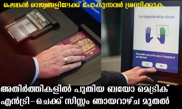 ഷെങ്കന് രാജ്യങ്ങളിലേക്ക് പോകുന്നവര് ശ്രദ്ധിക്കുക, അതിര്ത്തികളില് പുതിയ ബയോ മെട്രിക് എന്ട്രി-ചെക്ക് സിസ്റ്റം ഞായറാഴ്ച മുതല്