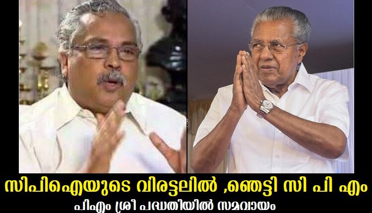 കൊച്ചി : ഏറെ നാളത്തെ വിവാദങ്ങള്ക്കൊടുവില് പിഎം ശ്രീ പദ്ധതി നടപ്പാക്കുന്നതുമായി ബന്ധപ്പെട്ട് ഭരണമുന്നണിയിലെ ചിലര് മന്ത്രിസഭാ തീരുമാനമില്ലാതെ എടുത്ത നിലപാടില് നിന്നും പിന്മാറി കീഴടങ്ങാന് സിപിഎമ്മും സംസ്ഥാന സര്ക്കാരും. ഇതുസംബന്ധിച്ച് കേന്ദ്രത്തിന് കത്തയക്കും. പി എം ശ്രീയില് ഒപ്പുവെച്ചതിന് പിന്നാലെ കടുത്ത എതിര്പ്പിലായിരുന്നു സിപിഐ. കേന്ദ്രത്തിന് കത്തയക്കാമെന്ന സമവായം സിപിഐക്ക് മുന്നില് വെച്ചതോടെയാണ് സമവായം ഉണ്ടായത്. .