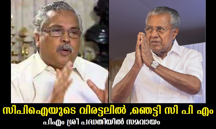 കൊച്ചി : ഏറെ നാളത്തെ വിവാദങ്ങള്ക്കൊടുവില് പിഎം ശ്രീ പദ്ധതി നടപ്പാക്കുന്നതുമായി ബന്ധപ്പെട്ട് ഭരണമുന്നണിയിലെ ചിലര് മന്ത്രിസഭാ തീരുമാനമില്ലാതെ എടുത്ത നിലപാടില് നിന്നും പിന്മാറി കീഴടങ്ങാന് സിപിഎമ്മും സംസ്ഥാന സര്ക്കാരും. ഇതുസംബന്ധിച്ച് കേന്ദ്രത്തിന് കത്തയക്കും. പി എം ശ്രീയില് ഒപ്പുവെച്ചതിന് പിന്നാലെ കടുത്ത എതിര്പ്പിലായിരുന്നു സിപിഐ. കേന്ദ്രത്തിന് കത്തയക്കാമെന്ന സമവായം സിപിഐക്ക് മുന്നില് വെച്ചതോടെയാണ് സമവായം ഉണ്ടായത്. .