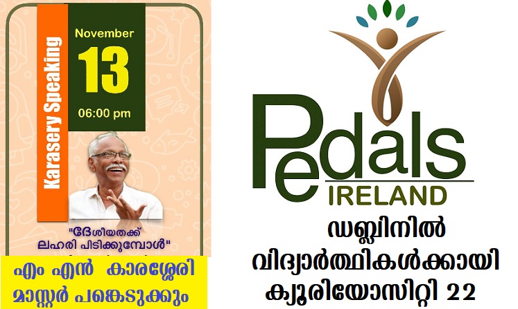 ഡബ്ലിന്: അയര്ലണ്ടിലെ വിദ്യാര്ത്ഥികള്ക്കായി Pedals Ireland സംഘടിപ്പിക്കുന്ന Curiosity ’22 നവംബര് 8 മുതല് 13 വരെ നടക്കും. ഒരാഴ്ചക്കാലം നീണ്ടുനില്ക്കുന്ന പരിപാടിയില് അയര്ലന്റിലെ വിവിധ കൗണ്ടികളില് നിന്ന് നിരവധി കുട്ടികള് പങ്കെടുക്കും.