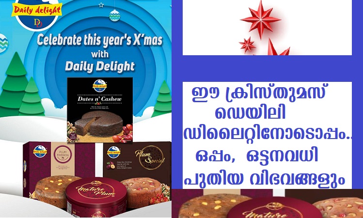 വളരെ പരിമിതമായ സ്റ്റോക്ക് മാത്രമാണ് ലഭ്യമായിട്ടുള്ളത്. ക്രിസ്തുമസ് കേക്കുകൾ ഉറപ്പാക്കാൻ ഡെയ്ലി ഡിലൈറ്റ് വിതരണക്കാർ മുഖനെ മുൻകൂട്ടി ബുക്ക് ചെയ്യാനുള്ള സൗകര്യങ്ങൾ ഉണ്ടായിരിക്കുന്നതാണ്.