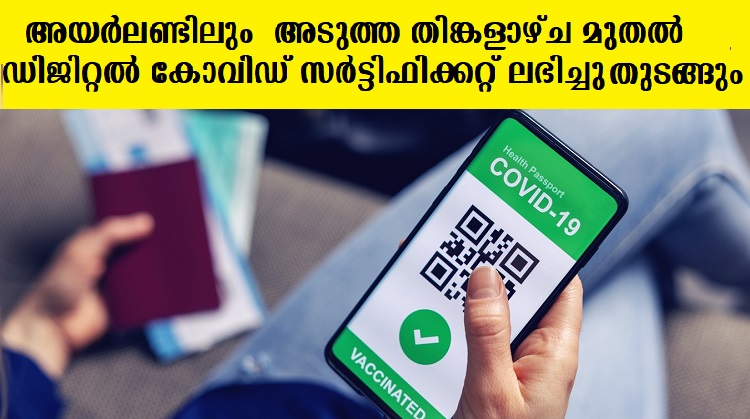 കാത്തിരിപ്പ് തീരുന്നു,അടുത്ത തിങ്കളാഴ്ച മുതല് അയര്ലണ്ടിലും ഡിജിറ്റല് കോവിഡ് സര്ട്ടിഫിക്കറ്റ് ലഭിച്ചു തുടങ്ങും