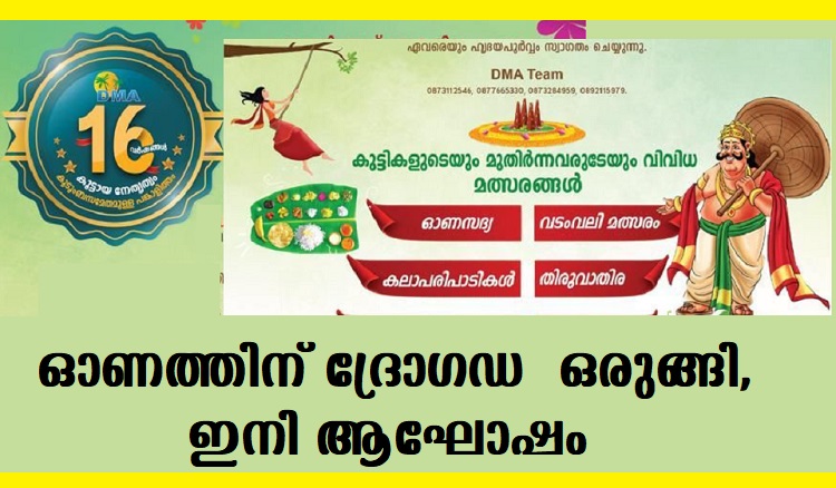 ദ്രോഗഡ മലയാളികളുടെ ഓണമഹോത്സവത്തിലേയ്ക്ക് ഏവരെയും സ്വാഗതം ചെയ്യുന്നതായി ഡി എം എ ടീം അറിയിച്ചു.