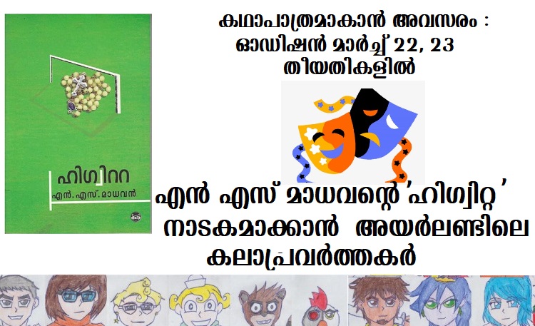ഡബ്ലിന്‍ : എന്‍ എസ് മാധവന്റെ ‘ഹിഗ്വിറ്റ’ എന്ന ചെറുകഥയ്ക്ക് അയര്‍ലണ്ടില്‍ സ്വതന്ത്ര നാടകാവിഷ്‌കാരമൊരുക്കുന്നു.ഈ നാടകത്തിലെ പ്രധാന കഥാപാത്രങ്ങളെ അവതരിപ്പിക്കാന്‍ അഭിനേതാക്കളെ ആവശ്യമുണ്ട്.