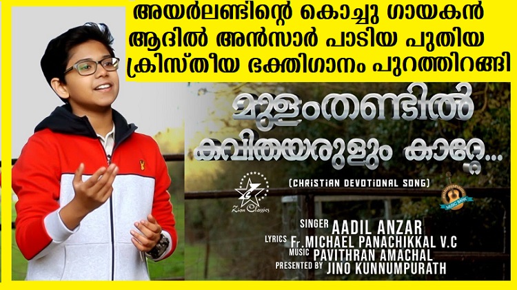 ഡബ്ലിന് :അയര്ലണ്ട് മലയാളികളുടെ പ്രിയപ്പെട്ട കൊച്ചുഗായകന് ആദില് അന്സാര് പാടിയ അതിമനോഹരമായ പുതിയ ക്രിസ്തീയ ഭക്തി ഗാനം പുറത്തിറങ്ങി. സിയോണ് ക്ലാസിക്സിന്റെ ബാനറില് ജിനോ കുന്നുംപുറത്താണ് യൂട്യൂബിലൂടെ ”മുളംതണ്ടില് ‘ എന്ന ഹൃദയസ്പര്ശിയായ ഈ ഗാനം റിലീസ് ചെയ്തിരിക്കുന്നത്.