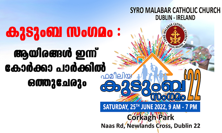 ഡബ്ലിന്‍: ഡബ്ലിന്‍ സീറോ മലബാര്‍ സഭയുടെ ഏഴാമത് കുടുംബസംഗമം ഇന്ന് ഡബ്ലിന്‍ നേസ് റോഡിലുള്ള കോര്‍ക്കാ പാര്‍ക്കില്‍ നടക്കും. രാവിലെ 9 മുതല്‍ വൈകിട്ട് 7 വരെ വിവിധങ്ങളായ കലാ, കായിക വിനോദ പരിപാടികളോടെ നടത്തപ്പെടുന്ന കുടുംബ സംഗമത്തിനുള്ള ഒരുക്കങ്ങള്‍ പൂര്‍ത്തിയായി. ഡബ്ലിനിലേയും പരിസര പ്രദേശങ്ങളിലേയും സീറോ മലബാര്‍ വിശ്വാസികള്‍ക്ക് ഒത്തുചേരാനും സൗഹൃദങ്ങള്‍ പുതുക്കാനുമുള്ള അവസരമായി ഫമീലിയ കുടുംബസംഗമം മാറും. കോവിഡ് മൂലം രണ്ടു വര്‍ഷത്തെ ഇടവേളയ്ക്കു ശേഷം നടക്കുന്ന കുടുബസംഗമത്തിനു ആയിരങ്ങള്‍ പങ്കെടുക്കും.