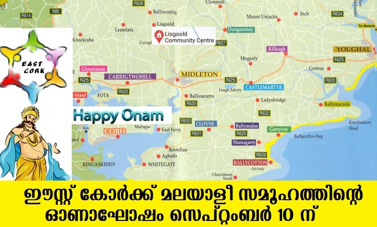 കോര്ക്ക് : അയര്ലണ്ടിലെ ചരിത്ര പ്രസിദ്ധവും പുരാതനവുമായ കോര്ക്ക് നഗരത്തിലെ പ്രശസ്തമായ മലയാളി കൂട്ടായ്മയായ ഈസ്റ്റ് കോര്ക്ക് മലയാളി അസോസിയേഷന്റെ പതിനാലാമത് ഓണാഘോഷ പരിപാടികള് സെപ്റ്റംബര് 10ന് ലിസ്ഗൂള്ഡ് കമ്മ്യൂണിറ്റി സെന്റ്ററില് വച്ച് പൂര്വ്വാധികം ആഘോഷപൂര്വ്വം കൊണ്ടാടുന്നു.