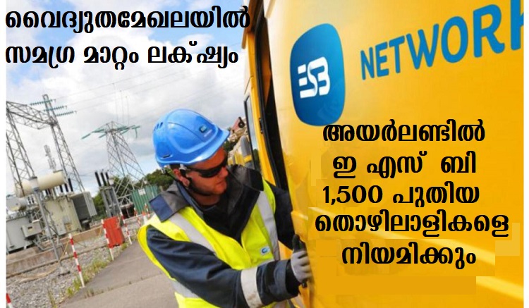 ഡബ്ലിന് : അയര്ലണ്ടിലെ ക്ളൈമറ്റ് ആക്ഷന് പദ്ധതിയുടെ ഭാഗമായി സീറോ എമിഷന് എനര്ജിയിലേക്ക് മാറുന്നതിനായി ഇലക്ട്രിസിറ്റി നെറ്റ്വര്ക്ക് നവീകരിക്കുന്നതിന്റെ ഭാഗമായി 1,500 പുതിയ തൊഴിലാളികളെ നിയമിക്കുവാന് സര്ക്കാര് തീരുമാനം.
