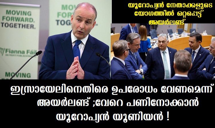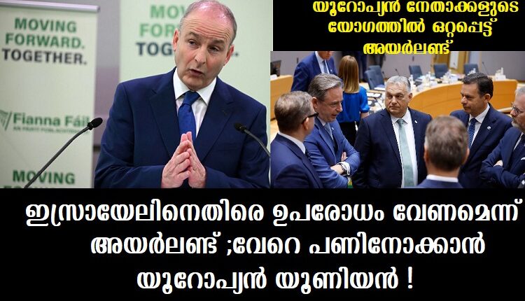 കരാര് പൂര്ണ്ണമായും നിര്ത്തിവയ്ക്കുകയോ വ്യാപാര ബന്ധങ്ങള് നിയന്ത്രിക്കുകയോ ചെയ്യുക, ഇസ്രായേല് മന്ത്രിമാര്ക്ക് ഉപരോധം ഏര്പ്പെടുത്തുക,ആയുധ ഉപരോധം ഏര്പ്പെടുത്തുക, വിസ രഹിത യാത്ര നിര്ത്തലാക്കുക തുടങ്ങിയ പത്ത് നടപടികളാണ് ഇവര് മുന്നോട്ടുവെച്ചത്.എന്നാല് അവയ്ക്കൊന്നും മതിയായ പിന്തുണ ലഭിച്ചില്ല.ഗാസയിലെ നാശനഷ്ടങ്ങളോട് ജനരോഷം ഉണ്ടെങ്കിലും ഇസ്രായേലിനെ എങ്ങനെ നേരിടണമെന്ന കാര്യത്തില് യൂറോപ്യന് യൂണിയന് രാജ്യങ്ങളില് ഭിന്നത നിലനില്ക്കുന്നു.ഇതാണ് ഈ നടപടികളിലൂടെ പുറത്തുവന്നത്. അയര്ലണ്ട് മാത്രമാണ് പാലസ്തീന് വേണ്ടി ‘കരയുന്നത് ‘എന്നതാണ് യാഥാര്ഥ്യം.