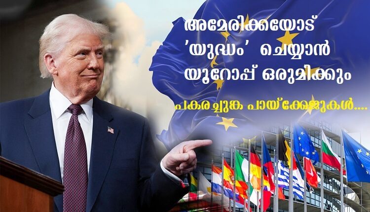 പകരച്ചുങ്ക പായ്ക്കേജുകള് തയ്യാറാക്കി ഇ യു : അമേരിക്കന് താരിഫിനെ അതേ നിലയില് തിരിച്ചടിക്കാന് തയ്യാറെടുക്കുന്നു