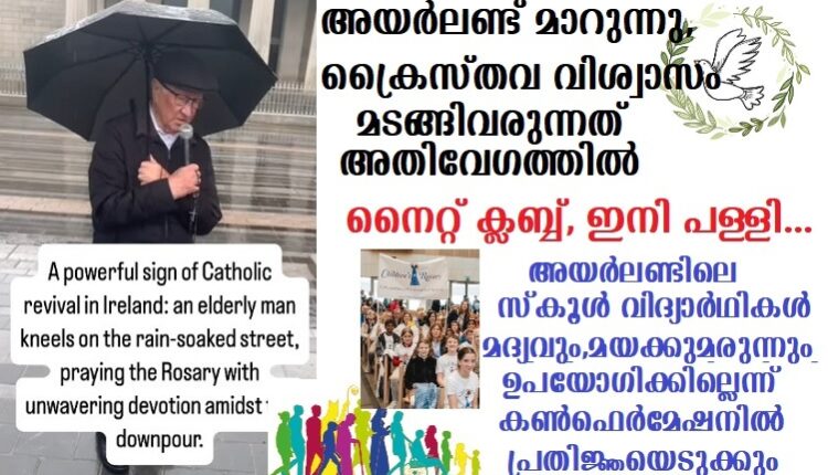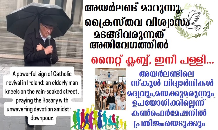 കുടിയേറ്റക്കാരുടെ വിശ്വാസ പ്രഖ്യാപനം ,അയര്ലണ്ടിലെ പഴയതലമുറയെയും ആവേശഭരിതരാക്കുന്നുണ്ട്. ഇടയ്ക്ക് കൈവിട്ടുപോയ വിശ്വാസത്തിന്റെ ദീപശിഖ ,വീണ്ടുമുയര്ത്തി അധിനിവേശങ്ങൾക്കെതിരെ ഒരു ഫീനിക്സ് പക്ഷിയെപ്പോലെ പറക്കാനാണ് അയര്ലണ്ടിലെ ക്രൈസ്തവ വിശ്വാസികള് തയാറെടുക്കുന്നത്.