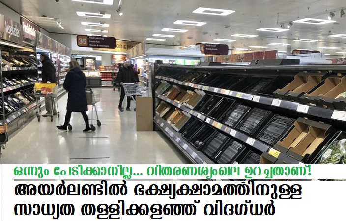 ഒന്നും പേടിക്കാനില്ല… അയര്‍ലണ്ട് വിതരണശൃംഖല ഉറച്ചതാണ്! അയര്‍ലണ്ടില്‍ ഭക്ഷ്യക്ഷാമത്തിനുള്ള സാധ്യത തള്ളിക്കളഞ്ഞ് വിദഗ്ധര്‍