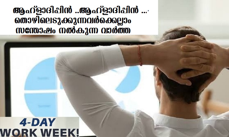 ആഴ്ചയില് നാല് പ്രവൃത്തിദിനങ്ങളാക്കാനുള്ള തീരുമാനം സ്പെയിനില് പരീക്ഷണാര്ഥം നടപ്പാക്കുന്നുവെന്നതാണത് ഈ ആഹ്ളാദവാര്ത്ത. ഈ പരിഷ്കാരം നടപ്പാക്കുന്ന ലോകത്തിലെ ആദ്യ രാജ്യമാവുകയാണ് സ്പെയിന്.ഇടതപക്ഷ പാര്ട്ടിയായ മാസ് പെയ്സിന്റെ പ്രപ്പോസലാണ് സ്പാനിഷ് സര്ക്കാര് നടപ്പാക്കുന്നത്.കഴിഞ്ഞ വര്ഷത്തെ പകര്ച്ച വ്യാധിയുടെ വരവാണ് നാല് പ്രവൃത്തിദിനങ്ങളെന്ന ആശയത്തിന്റെ പിറവിയ്ക്ക് കാരണമായത്.