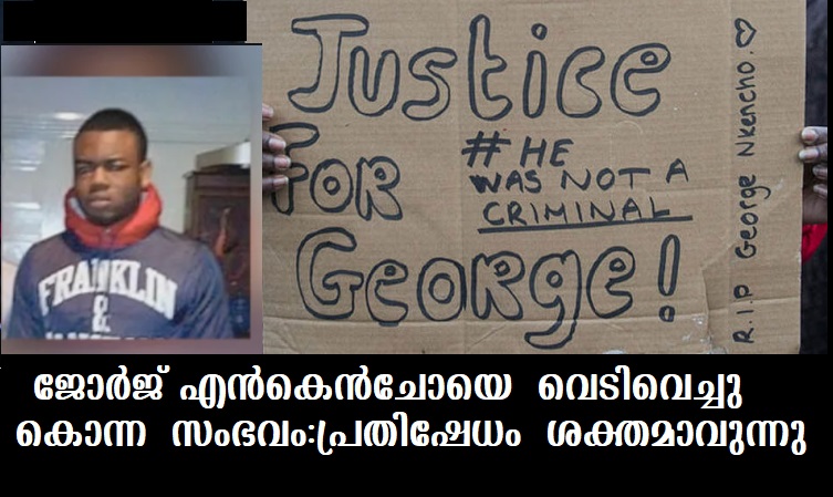 ജോര്‍ജ് എന്‍കെന്‍ചോയെ വെടിവെച്ചു കൊന്ന സംഭവം :പ്രതിഷേധം ശക്തമാവുന്നു