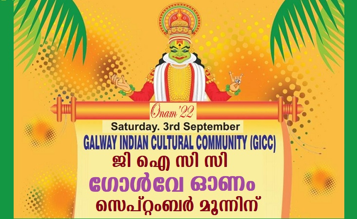 ഗോള്‍വേ :കോവിഡ് കാലത്തിന്റെ ഇടവേളയ്ക്കു ശേഷം ഗോള്‍വേയില്‍ ആഘോഷങ്ങളുടെ ഉത്സവക്കൊടിയുയര്‍ത്തി ഗോള്‍വേ ഇന്ത്യന്‍ കള്‍ച്ചറല്‍ കമ്മ്യൂണിറ്റി (GICC)യുടെ നേതൃത്വത്തില്‍ ഓണാഘോഷം സെപ്റ്റംബര്‍ മൂന്ന് ശനിയാഴ്ച .