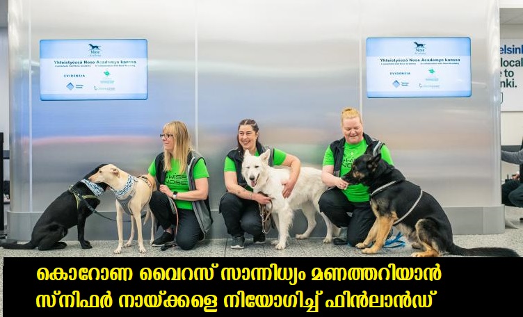 നാലുമാസത്തെ പരീക്ഷണാടിസ്ഥാനത്തിലാണ് ഫിന്ലാന്ഡ് ഹെല്സിങ്കി വിമാനത്താവളത്തില് കൊറോണ വൈറസ്-സ്നിഫിംഗ് നായ്ക്കളെ നിയോഗിച്ചത്.ഫിന്ലാന്ഡിന്റെ സ്മെല് ഡിറ്റക്ഷന് അസോസിയേഷനാണ് വിവിധ ഇനങ്ങളില്പ്പെട്ട നാല് നായ്ക്കളെ സര്ക്കാര് ധനസഹായത്തോടെ പരിശീലിപ്പിച്ചെടുത്തത്.വളരെ പ്രതീക്ഷ നല്കുന്ന ഒരു രീതിയാണിതെന്നും നായ്ക്കള് സ്നിഫിംഗില് വളരെ മികവു കാട്ടുന്നുണ്ടെന്നും ഹെല്സിങ്കി യൂണിവേഴ്സിറ്റി ഓഫ് എക്വിന് ആന്ഡ് സ്മോള് അനിമല് മെഡിസിന് പ്രൊഫസര് അന്ന ഹീല്ം-ജോര്ക്ക്മാന് പറഞ്ഞു.