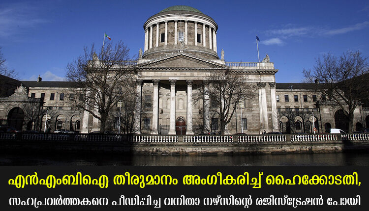 ഡബ്ലിന് : സഹപ്രവര്ത്തകനെ പീഡിപ്പിച്ച വനിതാ നഴ്സിന്റെ രജിസ്ട്രേഷന് റദ്ദാക്കിയ നഴ്സിങ് ആന്ഡ് മിഡൈ്വഫറി ബോര്ഡ് ഓഫ് അയര്ലണ്ടിന്റെ തീരുമാനം ഹൈക്കോടതി അംഗീകരിച്ചു.