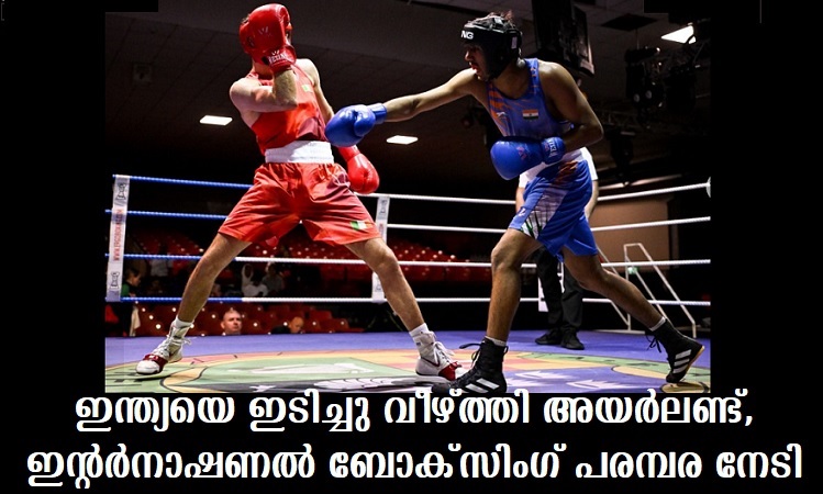 ഡബ്ലിന് : ഡബ്ലിന് നടന്ന ഇന്റര്നാഷണല് ബോക്സിംഗ് പരമ്പരയില് ഇന്ത്യയെ ഇടിച്ചു വീഴ്ത്തി അയര്ലണ്ട് വിജയിച്ചു.ഇന്ത്യയുടെ 10നെതിരെ 26 വിന്നുകളാണ് അയര്ലണ്ട് നേടിയത്.രണ്ടാം പാദത്തില് പാരീസ് ഒളിമ്പ്യന്മാരായ ജാക്ക് മാര്ലി, ജെന്നി ലെഹെയ്ന്, ഡീന് ക്ലാന്സി, ലോക വെങ്കല മെഡല് ജേതാവ് പാറ്റ്സി ജോയ്സ് എന്നിവരുടെ ശ്രദ്ധേയ വിജയങ്ങളും ഇതിലുള്പ്പെടുന്നു.20 മത്സരങ്ങളില് 14 വിജയവും നേടിയാണ് അയര്ലണ്ട് ഇന്നലെ പരമ്പര സ്വന്തമാക്കിയത്.