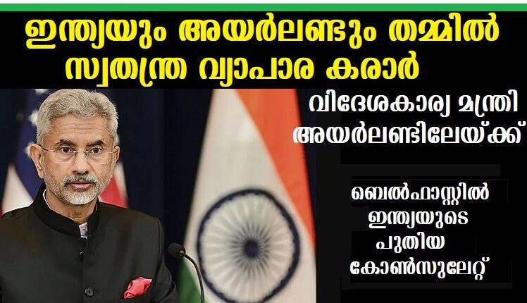 ഇന്ത്യയും അയര്ലണ്ടും തമ്മില് സ്വതന്ത്ര വ്യാപാര കരാര്, വിദേശകാര്യ മന്ത്രി എസ് ജയശങ്കര് അയര്ലണ്ടിലേയ്ക്ക്