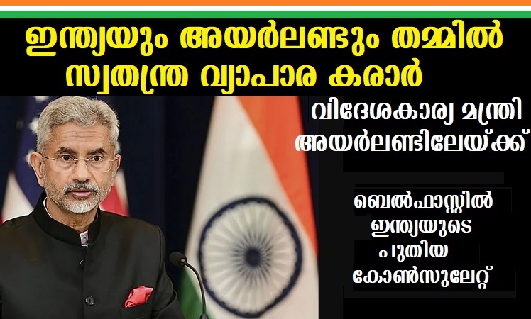 ഇന്ത്യയും അയര്ലണ്ടും തമ്മില് സ്വതന്ത്ര വ്യാപാര കരാര്, വിദേശകാര്യ മന്ത്രി എസ് ജയശങ്കര് അയര്ലണ്ടിലേയ്ക്ക്