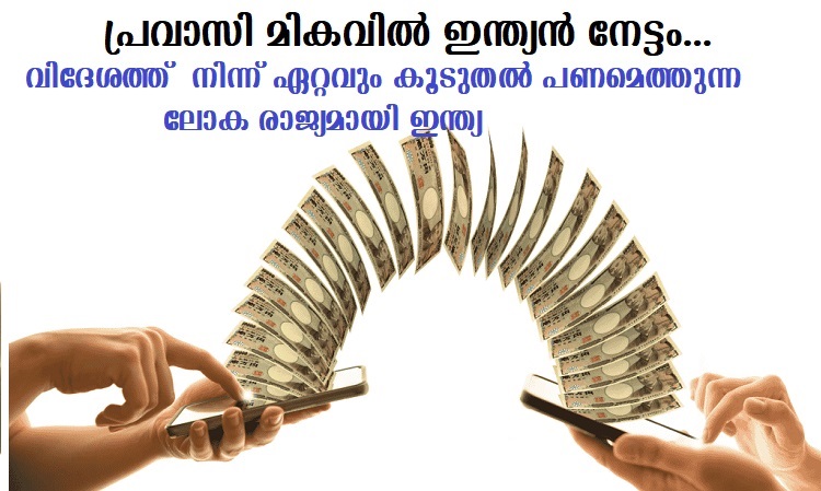 പ്രവാസി മികവില്‍ ഇന്ത്യന്‍ നേട്ടം,വിദേശത്ത്  നിന്ന് ഏറ്റവും കൂടുതല്‍ പണമെത്തുന്ന ലോക രാജ്യമായി ഇന്ത്യ
