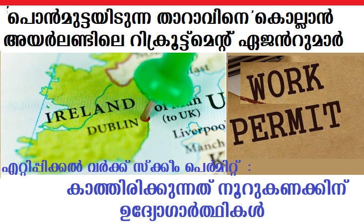 അടുത്തയിടെ അയര്‍ലണ്ടിലെ നഴ്സിംഗ് റിക്രൂട്ട്‌മെന്റ് മേഖലയില്‍ വിദേശത്തുനിന്നുള്ള നഴ്സുമാരുടെ ഒഴുക്ക് കുറയാനുള്ള പ്രധാന കാരണം എറ്റിപ്പിക്കല്‍ വര്‍ക്ക് വിസ ലഭിക്കുന്നതിനെടുക്കുന്ന കാലതാമസമാണ്.അയര്‍ലണ്ടിലേക്ക് ജോബ് ഓഫര്‍ ലഭിച്ച ശേഷം , ഗള്‍ഫ് അടക്കമുള്ള രാജ്യങ്ങളില്‍ നിന്നും ജോലി രാജിവെച്ച്, എറ്റിപ്പിക്കല്‍ വര്‍ക്ക് വിസയ്ക്കായി മാസങ്ങളായി കാത്തിരിക്കുന്നവരുണ്ട്.ഇവരുടെയെല്ലാം പ്രതീക്ഷകള്‍ക്ക് മങ്ങലേല്‍പ്പിക്കുകയാണ് നിലവിലുള്ള കാലതാമസം.പ്രത്യേക വൈദഗ്ദ്ധ്യം ആവശ്യമുള്ള ആരോഗ്യ മേഖലയിലടക്കം അയര്‍ലണ്ടിലെ ഒരു സ്ഥാപനത്തില്‍ ജോലി നേടുന്നതിന് ഇന്ത്യ അടക്കമുള്ള നോണ്‍ യൂറോപ്യന്‍ ഇക്കണോമിക് ഏരിയ ( നോണ്‍ ഇഇഎ)യില്‍ നിന്നുള്ള ഉദ്യോഗാര്‍ത്ഥികള്‍ അയര്‍ലണ്ടില്‍ ആദ്യമായി എത്തുന്നത് എറ്റിപ്പിക്കല്‍ വര്‍ക്ക് സ്‌ക്കീം വഴിയാണ്.