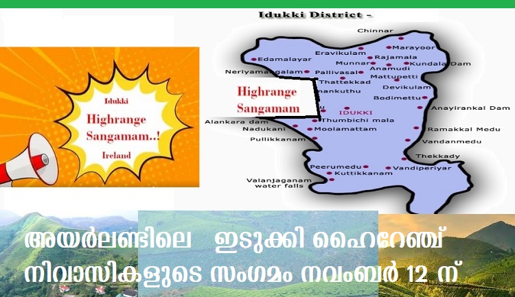 ഡബ്ലിന്: അയര്ലണ്ടിലെ ഇടുക്കി ഹൈറേഞ്ച് നിവാസികളുടെ സംഗമം നവംബര് 12 ന് ഡബ്ലിനില് നടത്തപ്പെടും.ഇടുക്കിയുടെ സാംസ്കാരിക തനിമ പ്രവാസി ദേശത്തുമുണര്ത്തുന്ന വൈവിധ്യമാര്ന്ന കാര്യ പരിപാടികളോടെയാവും ഹൈറേഞ്ച് സംഗമം ഒരുക്കുകയെന്ന് സംഘാടകര് അറിയിച്ചു.
