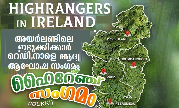 ഡബ്ലിന്‍ : ഇടുക്കി ഹൈറേഞ്ചില്‍ നിന്നും അയര്‍ലണ്ടില്‍ എത്തിയ പ്രവാസി മലയാളികളുടെ കൂട്ടായ്മയായാ ‘High-rangers in Ireland’ സംഘടിപ്പിക്കുന്ന ആദ്യ ഹൈറേഞ്ചു സംഗമം നാളെ (നവംബര്‍ 12 ശനിയാഴ്ച) 3 മണി മുതല്‍ ഡബ്ലിന്‍ സ്വോര്‍ഡ്സില്‍ ഓള്‍ഡ് ബൊറോ നാഷണല്‍ സ്‌കൂള്‍ ഓഡിറ്റോറിയത്തില്‍ വെച്ച് നടത്തപ്പെടുന്നു.