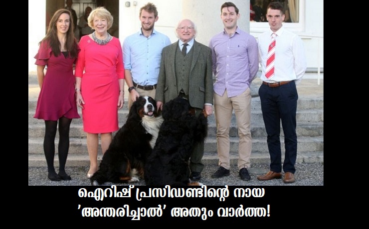 ഡബ്ലിന് : ഐറിഷ് പ്രസിഡണ്ട് മൈക്കിള് ഡി ഹിഗ്ഗിന്സിന്റെ പ്രിയപ്പെട്ട നായ ‘സിയോഡ ‘അന്തരിച്ച’.തും വാര്ത്തയായി. പ്രസിഡന്റിന്റെ വാര്ത്താക്കുറിപ്പിലൂടെയാണ് ‘ദു:ഖകരമായ’ ഈ വാര്ത്ത ലോകത്തെയറിയിച്ചത് !