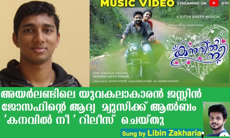 ലെറ്റര്കെന്നി : അയര്ലണ്ടിലെ യുവകലാകാരന് ജസ്റ്റിന് ജോസഫിന്റെ ആദ്യ മ്യുസിക്ക് ആല്ബം ‘കനവില് നീ ‘ സോഷ്യല് മീഡിയയില് റിലീസ് ചെയ്തു.