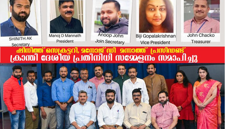 പ്രതിനിധി സമ്മേളനം 20 അംഗ ദേശീയ കമ്മിറ്റിയെ തെരഞ്ഞെടുത്തു. 20 അംഗ സെന്ട്രല് കമ്മിറ്റി കൂടിയ ആദ്യ യോഗത്തില് അടുത്ത സമ്മേളനം വരെയുള്ള ക്രാന്തിയുടെ പ്രവര്ത്തനങ്ങള്ക്ക് നേതൃത്വം കൊടുക്കുവാന് ഷിനിത്തിനെ സെക്രട്ടറിയായും മനോജ് ഡി മന്നാത്തിനെ പ്രസിഡന്റ് ആയും അനൂപ് ജോണിനെ ജോയിന് സെക്രട്ടറിയായും ബിജി ഗോപാലകൃഷ്ണനെ വൈസ് പ്രസിഡന്റ് ആയും ജോണ് ചാക്കോയെ ട്രെഷറര് ആയും തെരഞ്ഞെടുത്തു.