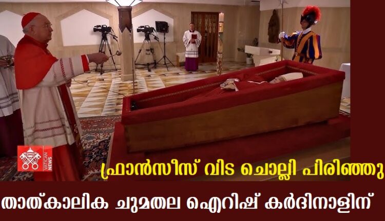 കാമെര്ലെംഗോ ചുമതല ഏറ്റെടുത്ത ഐറീഷ് വംശജനായ കര്ദിനാള് കെവിന് ഫാരലിന്റെ നേതൃത്വത്തില് പുതിയ മാര്പാപ്പയെ തിരഞ്ഞെടുക്കാനുള്ള കോണ്ക്ലേവിന്റെ ഒരുക്കങ്ങള് തുടങ്ങി.ഫ്രാന്സിസ് മാര്പ്പാപ്പയുടെ സംസ്കാര ചടങ്ങളുകള് ഏകോപിപ്പിച്ചതും ഐറിഷ് കര്ദിനാളാണ്.പുതിയ മാര്പ്പാപ്പയെ തിരഞ്ഞെടുക്കുന്നത് വരെ ആഗോള കത്തോലിക്കാ സഭയുടെയും വത്തിക്കാന് സിറ്റിയുടെയും ഭരണ നിര്വഹണ കാര്യാലയം ആണ് കാമെര്ലെംഗോയുടേത്..