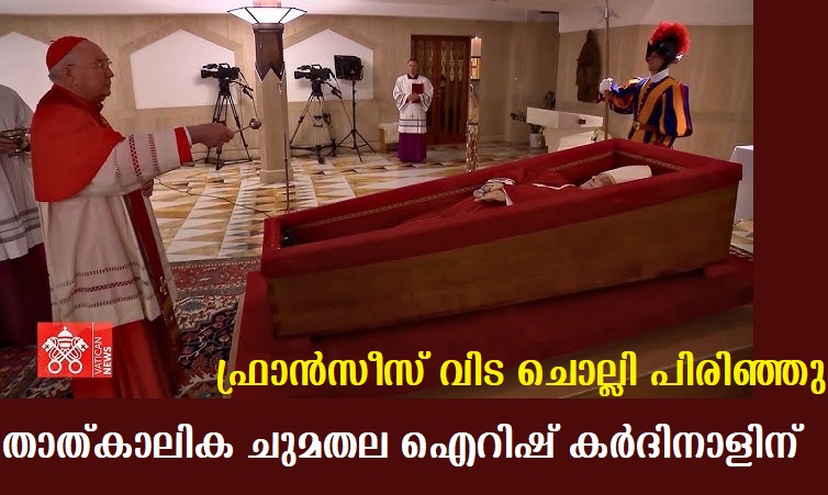 കാമെര്ലെംഗോ ചുമതല ഏറ്റെടുത്ത ഐറീഷ് വംശജനായ കര്ദിനാള് കെവിന് ഫാരലിന്റെ നേതൃത്വത്തില് പുതിയ മാര്പാപ്പയെ തിരഞ്ഞെടുക്കാനുള്ള കോണ്ക്ലേവിന്റെ ഒരുക്കങ്ങള് തുടങ്ങി.ഫ്രാന്സിസ് മാര്പ്പാപ്പയുടെ സംസ്കാര ചടങ്ങളുകള് ഏകോപിപ്പിച്ചതും ഐറിഷ് കര്ദിനാളാണ്.പുതിയ മാര്പ്പാപ്പയെ തിരഞ്ഞെടുക്കുന്നത് വരെ ആഗോള കത്തോലിക്കാ സഭയുടെയും വത്തിക്കാന് സിറ്റിയുടെയും ഭരണ നിര്വഹണ കാര്യാലയം ആണ് കാമെര്ലെംഗോയുടേത്..
