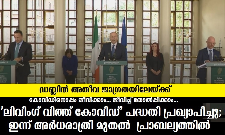 ഡബ്ലിന് : അയര്ലന്ഡില് കോവിഡിനെ മറികടക്കാന് പ്രത്യേക പ്ലാനുമായി സര്ക്കാര്.കോവിഡിനെ ജീവിച്ച് തോല്പ്പിക്കുകയെന്ന ആശയമാണ് സര്ക്കാര് അഞ്ച് ഘട്ടങ്ങളുള്ള ‘ലിവിംഗ് വിത്ത് കോവിഡ്’ പദ്ധതിയിലൂടെ പ്രാവര്ത്തികമാക്കുന്നത്.ഇതിന്റെ വിശദാംശങ്ങള് പ്രധാനമന്ത്രി പ്രഖ്യാപിച്ചു.