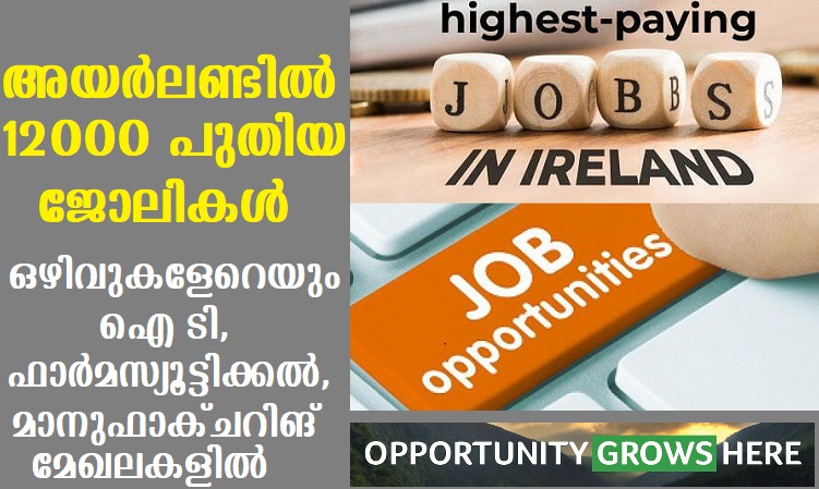 അയര്‍ലണ്ടില്‍ ആറുമാസത്തിനുള്ളില്‍ 12000 പുതിയ ജോലികള്‍ , ഒഴിവുകളേറെയും ഐ ടി, ഫാര്‍മസ്യൂട്ടിക്കല്‍, മാനുഫാക്ചറിങ് മേഖലകളില്‍