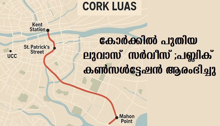 കോര്ക്ക് : കോര്ക്കിലേയ്ക്ക് പുതിയ ലുവാസ് സര്വീസ് വരുന്നു. ബാലിന്കോളിഗ് മുതല് മഹോണ് പോയിന്റ് വരെ നീളുന്ന 18 കിലോമീറ്റര് ദൈര്ഘ്യമുള്ള ലുവാസ് കോര്ക്ക് ലൈറ്റ് റെയില് സര്വീസിന്റെ ഈ റൂട്ടിനെക്കുറിച്ച് പബ്ലിക് കണ്സള്ട്ടേഷന് ആരംഭിച്ചു.ജൂണ് 9 വരെ എട്ട് ആഴ്ചത്തേക്ക് ഇക്കാര്യത്തില് പൊതുജനങ്ങള്ക്ക് അഭിപ്രായം തേടുന്നതിനാല്, നിര്ദ്ദിഷ്ട റൂട്ടില് അഭിപ്രായം പറയാം.