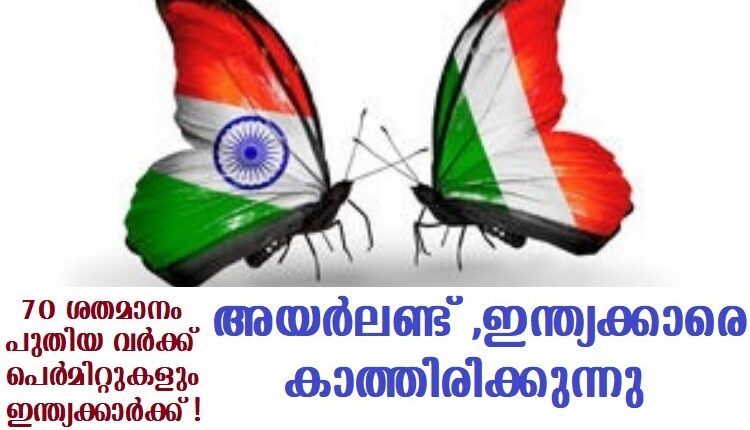 അയര്‍ലണ്ട് ,ഇന്ത്യക്കാരെ കാത്തിരിക്കുന്നു, 70 ശതമാനം പുതിയ വര്‍ക്ക് പെര്‍മിറ്റുകളും ഇന്ത്യക്കാര്‍ക്ക് !