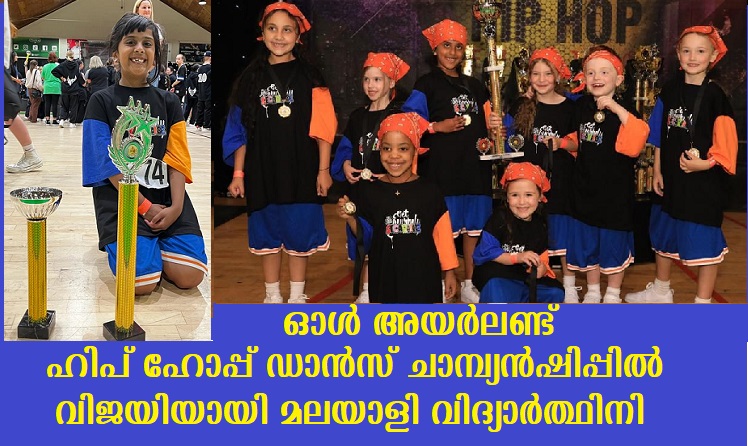 ഡബ്ലിനില് നടത്തപ്പെട്ട സ്പെക്ട്രം ഡാന്സ് കോമ്പറ്റിഷനില് 8 വയസ്സിന് താഴെയുള്ള സ്റ്റാര്ട്ടേഴ്സ് ഹിപ്-ഹോപ്പ് മത്സരത്തിലാണ് വാട്ടര്ഫോര്ഡിലെ കരുനാഗപ്പള്ളി സ്വദേശികളായ നിജാദ് എം റഷീദിന്റെയും റനീസ റഷീദിന്റെയും മകളായ നിലോഫര് നിജാദ് കിരീടമണിഞ്ഞത്.