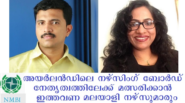 ഡബ്ലിന്: അയര്ലണ്ടിലെ നഴ്സിംഗ് ആന്ഡ് മിഡ്വൈഫറി ബോര്ഡിന്റെ (എന് എം ബി ഐ ) മാനേജിങ് ബോര്ഡിലേക്ക് നടത്തപ്പെടുന്ന തിരഞ്ഞെടുപ്പില് മത്സരിക്കാന് ഇത്തവണ രണ്ട് മലയാളികളും .