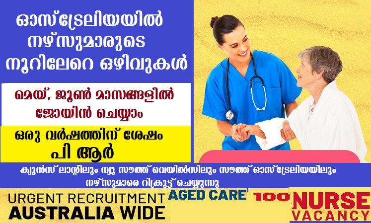 ഓസ്ട്രേലിയയില് നഴ്സുമാരുടെ നൂറിലേറെ ഒഴിവുകള്… മെയ്, ജൂണ് മാസങ്ങളില് ജോയിന് ചെയ്യാം… ഒരു വര്ഷത്തിന് ശേഷം പി ആര്